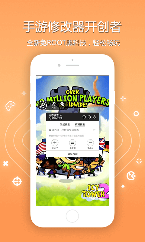 2、免ROOT修改器:免除之前手机需要ROOT才能使用的烦恼,真正做到一键修改游戏。