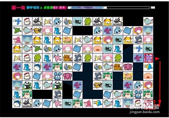 4、消除了两个相邻一样的,我们就开始找边缘一样的头像,头像会隔着点距离,而且有时候头像长的还很类似,所以这就考验你的眼力了,我们需要发挥稳准狠的风格,开拓进取,如图边缘的消除。