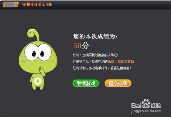 7、最后时间条消失的时候,游戏就结束了,不管有什么消除完,游戏结尾都会有你这次游戏的成绩得分,如果想创造更高的成绩,那么就重新来玩一把,选择继续游戏就可以重新开始了!