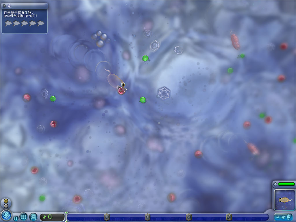 Tidepool阶段:孢子游戏起初的活动是一种自由模式很类似于《派克人》、NES经典游戏《46亿年物语》以及DC上的《动物番长》,在自然法则之下,依靠杀掉敌人并吃掉敌人来成长自己;