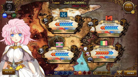 (1)TURN即回合数,每个回合有三个阶段:准备阶段、作战阶段、据点阶段,每个阶段可操作的内容不同,不同的操作影响不同的结局。