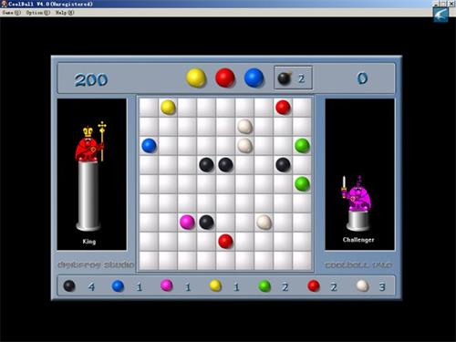 当同一颜色的彩球连成5个一行或一列或一斜线时,这5个彩球同时消失,游戏得分。当画面上每个方格都被彩球占满时,游戏结束。
