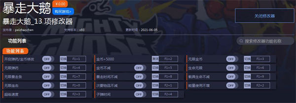 暴走大鹅十三项修改器 v93 一休大师版免费下载