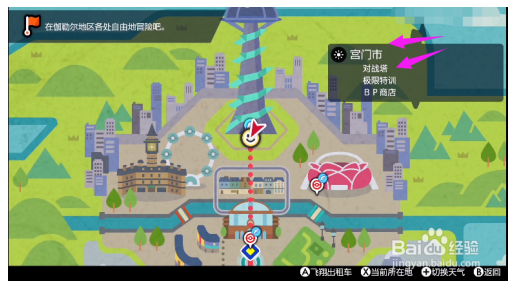 接着前往【宫门市】里面的【对战塔】战斗,如图。