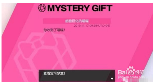 我们打开宝可梦剑盾的游戏菜单,里面有个【礼物】,点击进入【接收神秘礼物】,【通过互联网接收】,就可以获取这个极巨化喵喵。