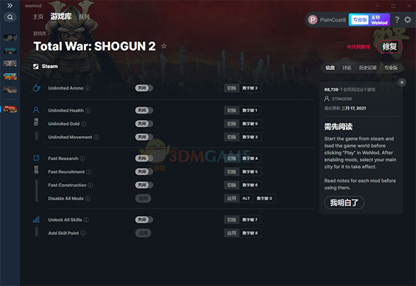 幕府将军2修改器3dm版 v1.0 steam电脑版下载