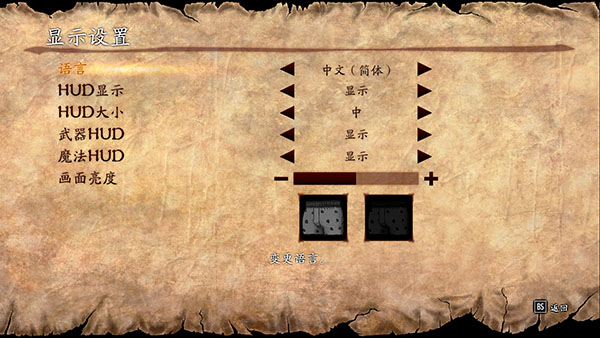 7. 在显示设置当中,我们可以调整 hud 大小、武器 hud 以及亮度;