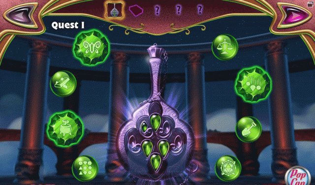 Quest(任务模式):有五个部分,共40关,每个部分下面都有需要解开的8个谜题,解开任意其中4个即可开启下一部分,而完成一部分全部8个谜题即可获得相应宝物。