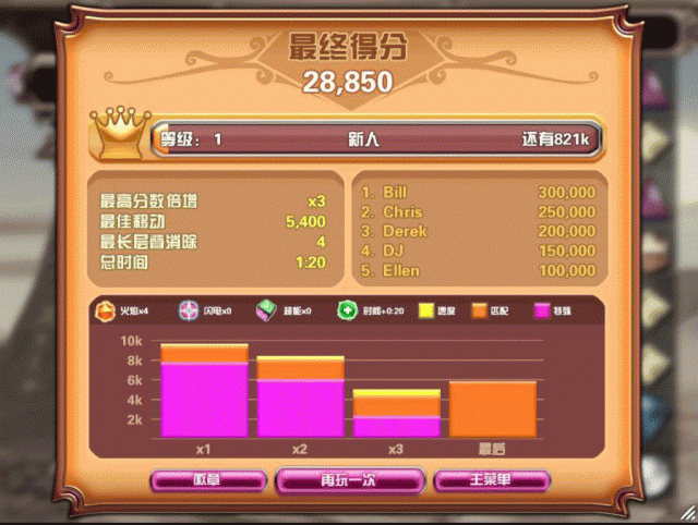Ice Storm III:同Ice Storm模式。冰柱崩溃前消除250枚宝石。