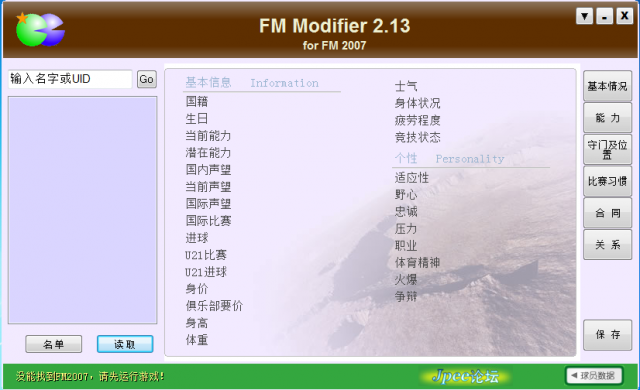 fm2007修改器是一款功能强大,好用的fmm游戏修改辅助软件。