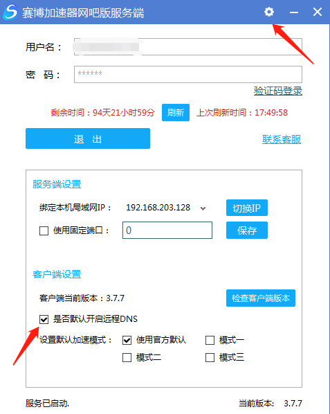 在网吧服务器上打开赛博网吧版服务端,点击高级配置,然后选中开启远程DNS即可。