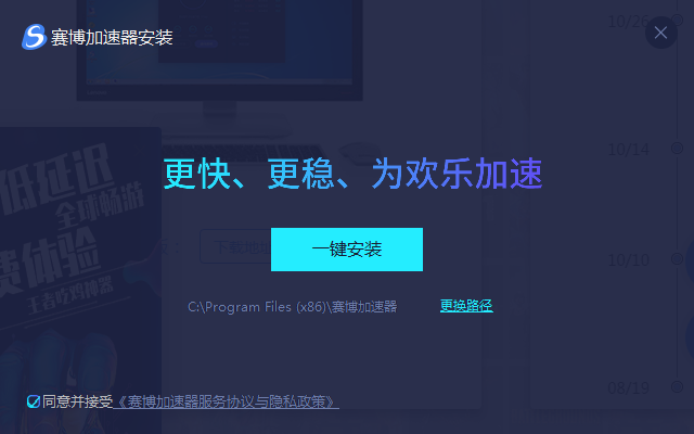 1、到本站下载安装赛博加速器,打开安装程序,选择更换路径或是一键安装
