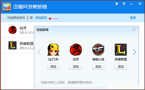 目前支持以下游戏更新:(英雄联盟、剑灵、QQ飞车、穿越火线、逆战,未完待续...)