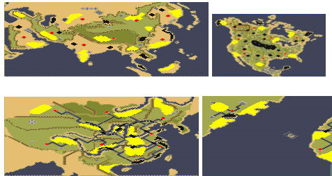 和dolphins's map 04相似,只是科技机场在地图的左边并且只有一个,占领该科技机场,你会拥有无限的电力和不断飞快增长的金钱,还有苏军的磁暴线圈和盟军的防空炮也是绝门武器,攻击范围变的很大,攻击力也增强了不少。