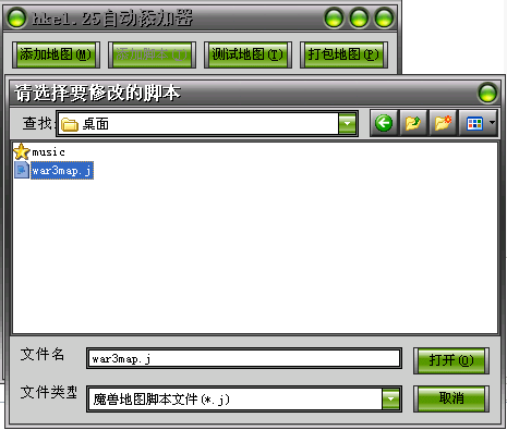 5、添加脚本:单击 添加脚本(J) 按钮,然后选择解压缩后的war3map.j文件