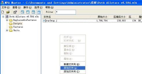 添加已经修改了的解压缩war3map.j文件到步骤1里的MPQ打开的script文件夹下,覆盖掉以前的文件。
