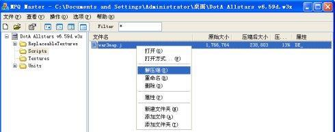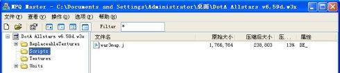 1、启动魔兽改图一条龙里的MPQ,来打开你要修改的魔兽地图!在script文件夹下找到war3map.j这个文件