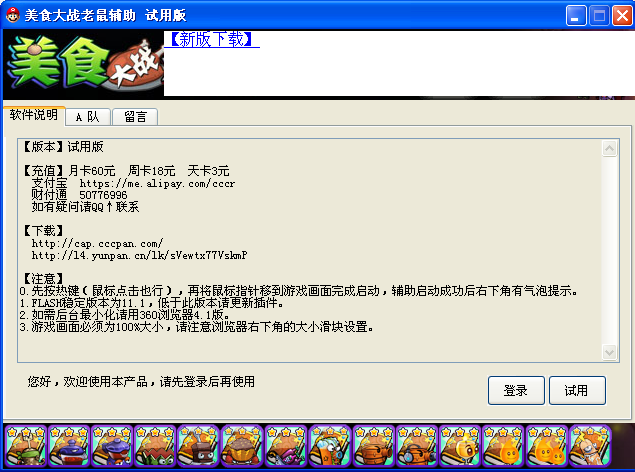 光行资源网提供的美食大战老鼠渣渣辅助是为同名游戏制作的一款辅助软件,提供基础修正、宝石修正、强制功能等多种功能,可以简单地虐待对方,还可以强制模式哦!喜欢这一款软件的用户快来下载哦!