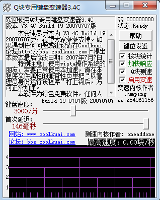2、QQ俄罗斯方块游戏本身就存在着一些不公平,键盘加速器是专为那些非职业玩家、或者不会改键盘的人所设计的,你可以通过滑块设置键盘速度和首次延迟,还能对键位设置、启用变速、加快响应、Q块测速等,玩QQ俄罗斯方块必备的一款加速器!