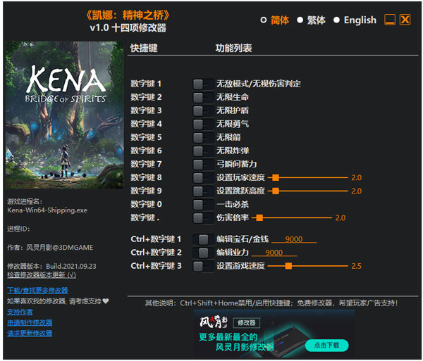 柯娜精神之桥十四项修改器风灵月影版v1.0实用版