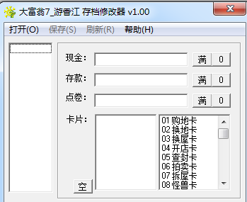 大富翁7修改器是一款专为游戏大富翁7而制作的游戏修改器。富翁7修改器能够帮助玩家更改游香江的存档,实现现金,存款,点卷,卡片的数量作弊功能,从而帮助玩家更好的体验游戏。