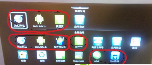 三、ROOT成功后可以用电视连接豌豆荚,来删除一些不用的软件,也可以用其它软件