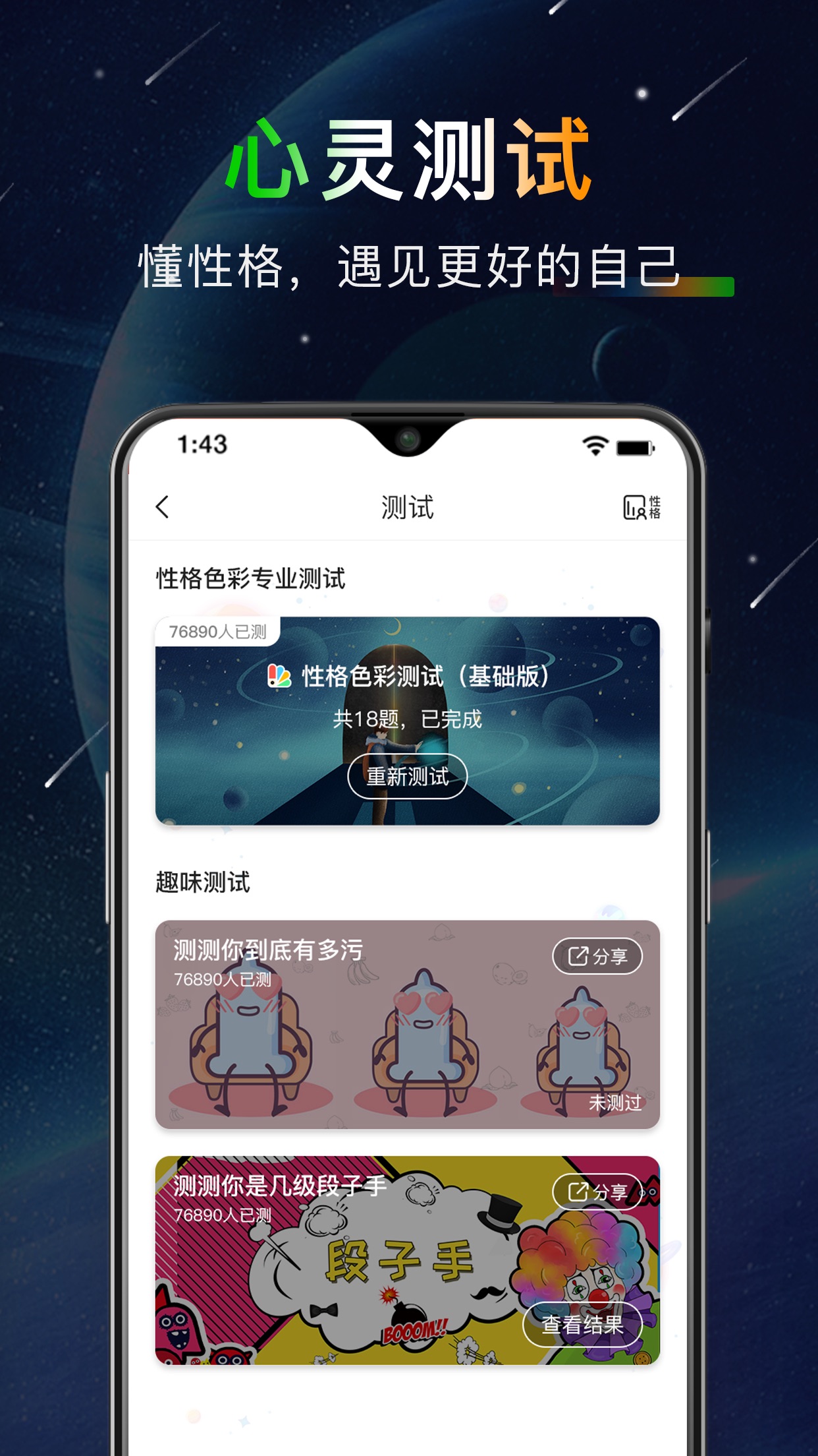哒呤星球app,内心检测,数据分析系统本人性格特征,为客户产生高品质感情、工作服务项目,掌握自我价值,寻找适合目标。来哒呤星球app,给你解决困难,根据性情寻找爱。