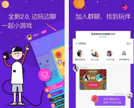 来同桌游戏,多人抢麦一展歌喉,语音聊天贴近彼此,趣味游戏嗨不停。
