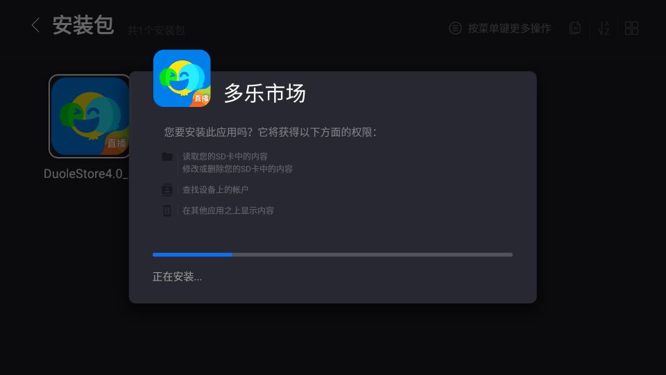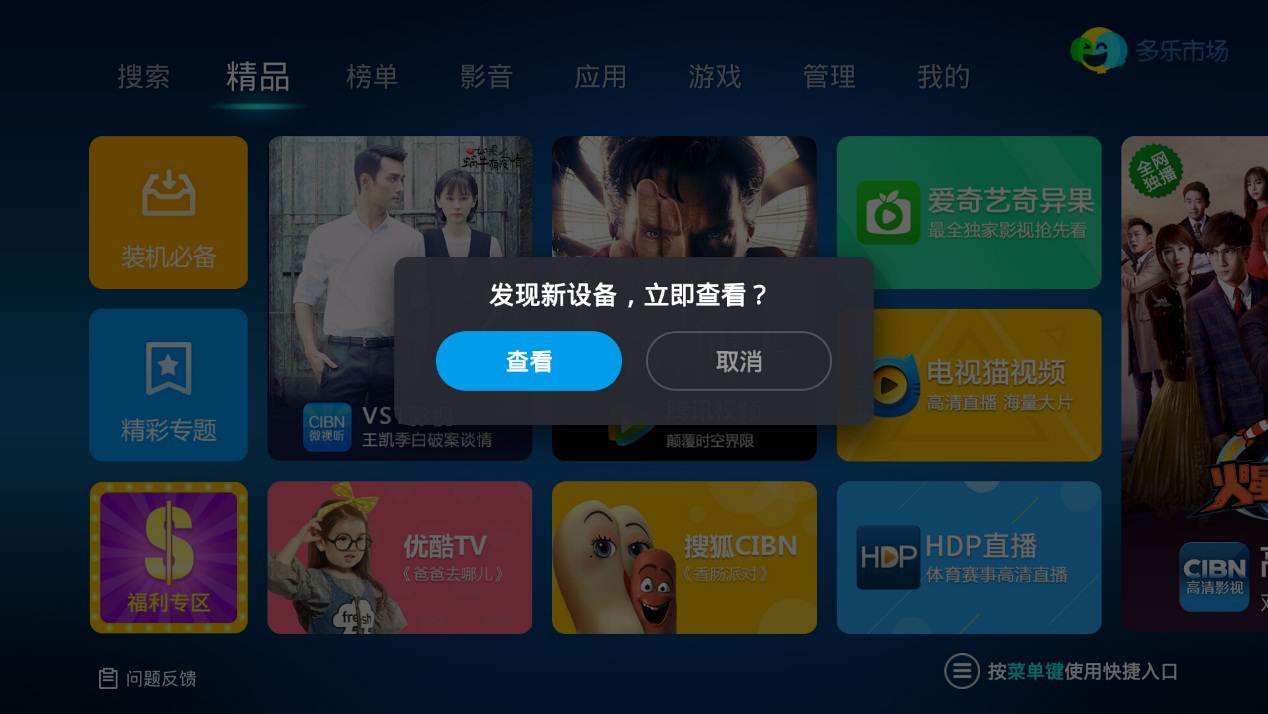 多乐市场是一款Android系统智能电视及电视盒子的APP下载平台。为您提供海量的视频、直播、音乐、游戏、工具、教育等APP资源,通过它轻松实现下载、安装和资源管理,让您的电视好看更好玩!