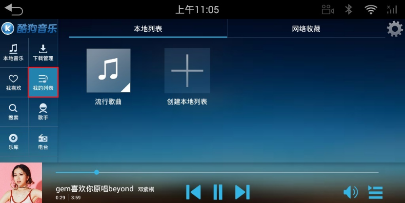 4、我的列表:当你的本地音乐太多,又不想按顺序听,而想挑选一些喜欢的。可以在我的列表创建不同名字的列表,对歌曲进行分类。