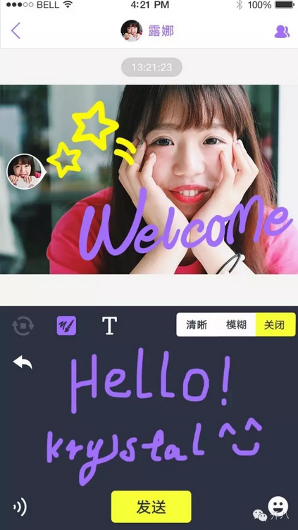 即时涂鸦的功能,可以图片聊天时可从文字输入切换到涂鸦模式,可直接在画面。