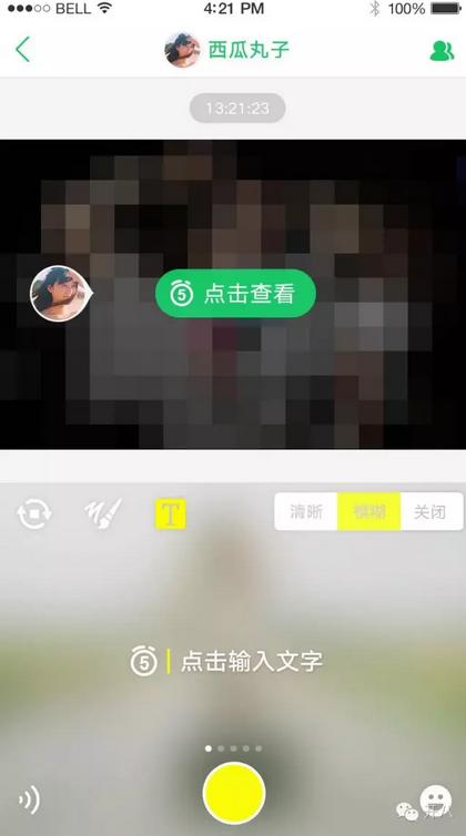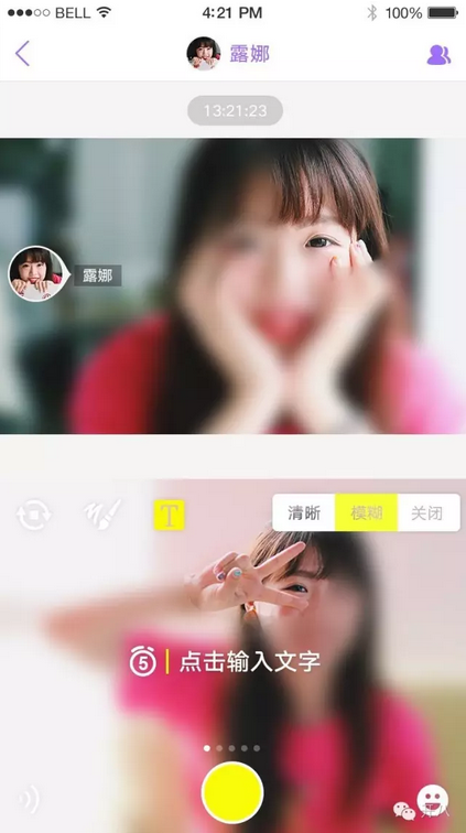 还有一个模糊点亮的功能,选择模糊模式后,全画面模糊,发送者可用手指点画面,使部分画面恢复清晰。