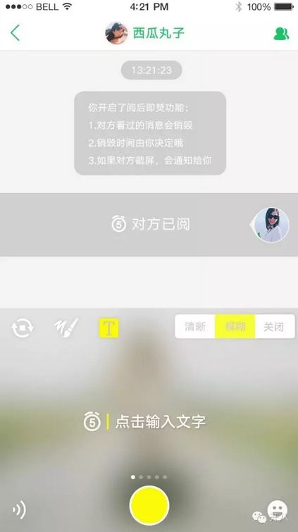 3.阅后即焚:消息不想让别人看到,可通过阅后即焚的方式发送确保安全送达。