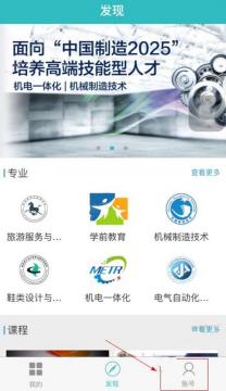 1、打开智慧职教APP,在发现页面中点击账号按钮进入登录页面;
