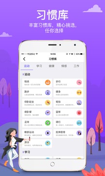根据自己的需求编辑制定目标,比如每天喝八杯水、减肥、健身、练习瑜伽、跑步、背单词、戒烟、看书、不看手机、不玩王者荣耀等,战胜懒癌开启自己的新旅程。