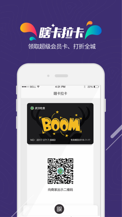 享受活动折扣的唯一通行证,走遍大武汉必备良卡。领取后出示卡片二维码即可使用。