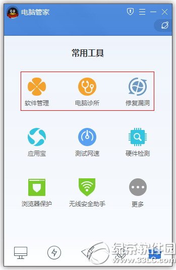 2、软件管理、电脑诊所、应用宝在哪里?