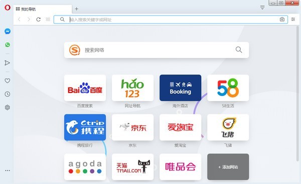 Opera 浏览器具有合并的搜索和地址栏功能,更能够自定义键盘快捷键和鼠标手势。