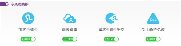 3)内置专杀工具,针对一些特殊性、破坏力强的病毒,提供更好的防护及解决方案,为解决顽固性病毒提供有力保障;