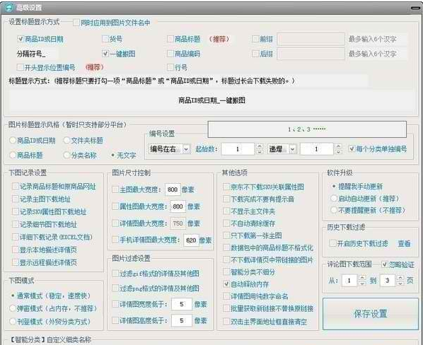 用户可以自己设置下载后文件夹的名称、文件夹归类的层级数量、文件名称等,也可以设置是否导出下载记录、控制图片大小、过滤重复图片等等个性化设置。