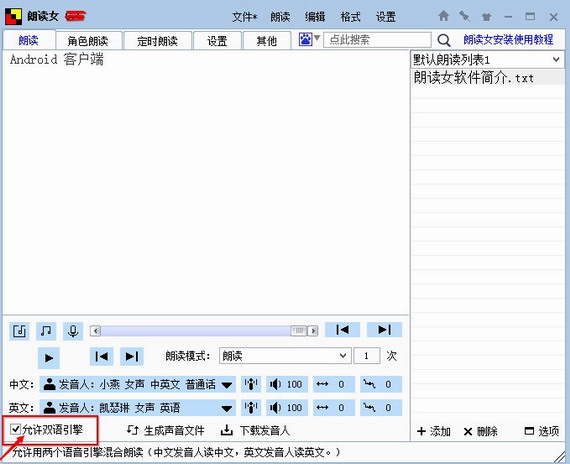 2、出现中英文发音人设置项后,设置好中文发音人和英文发音人即可。