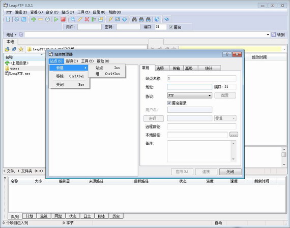 我们不仅可以传输单个文件,还可以传输多个文件甚至整个目录,LeapFtp主要提供了五种方法。