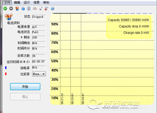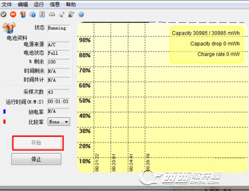 界面信息有电池状态、剩余百分比、运行时间、放电率等,有空的可以研究研究,简单粗暴型的直接看到左下的开始、结束两个按钮即可。