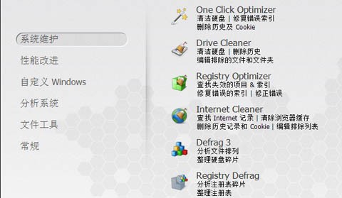 Ashampoo WinOptimizer具备一系列的系统维护工具:一键修复、磁盘清理、注册表优化、浏览器清理、磁盘碎片整理、注册表碎片整理等工具。通过这些工具你可以快速对系统进行全面清洁整理。