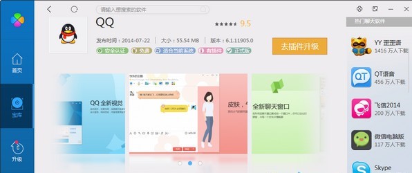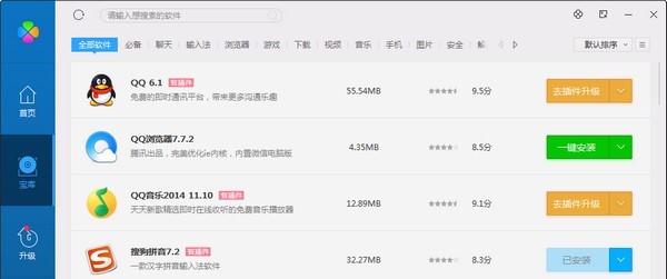 2.易于管理:安装、升级、卸载、运行,自在掌握。使用QQ软件管理可以及时获得最新软件的推荐消息,并方便、快捷的进行安装、升级、卸载,已经安装的软件可以更容易找到并运行。