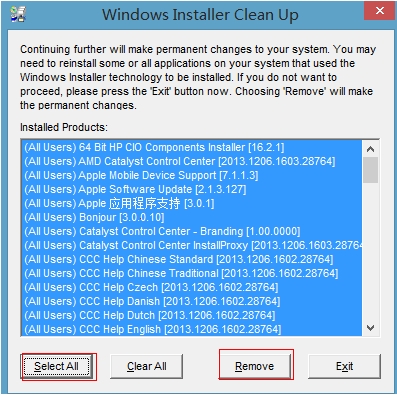 2. windows installer clean up提供一个对话框,您可以从中选择一个或多个由 Windows Installer 安装的程序