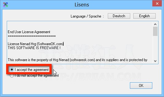 第1步:将 StressMyPC软件下载回来、点两下执行「StressMyPC.exe」文件。出现如下的画面时,点「I accept the agreement」再按「OK」按钮即可开始使用。