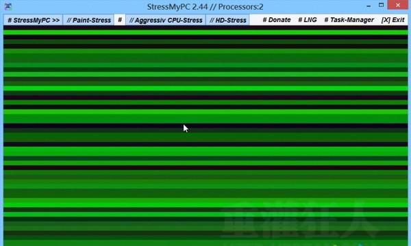第3步:接着画面会开始花花绿绿的…,视窗下方会显示目前显示卡、硬盘读写..等运作状态。一般来说,只要执行个10分钟,电脑没死当的话应该都没啥大问题。