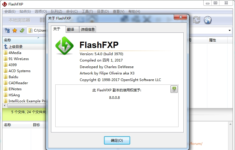 FlashFXP是一个功能强大的 FXP/FTP 软件,融合了一些其他优秀 FTP软件的优点,如像 CuteFTP 一样可以比较文件夹,支持彩色文字显示;像 BpFTP 支持多文件夹选择文件,能够缓存文件夹;像 LeapFTP 一样的外观界面,甚至设计思路也差相仿佛。支持上传、下载及第三方文件续传;可以跳过指定的文件类型,只传送 需要的文件;可以自定义不同文件类型的显示颜色;可以缓存远端文件夹列表,支持FTP代理及 Socks 3&4;具有避免空闲功能,防止被站点踢出;