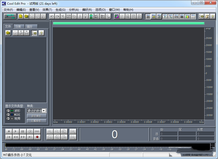 2、打开cooledit pro 2.0后,会自动建立一个新的工程。界面如下: